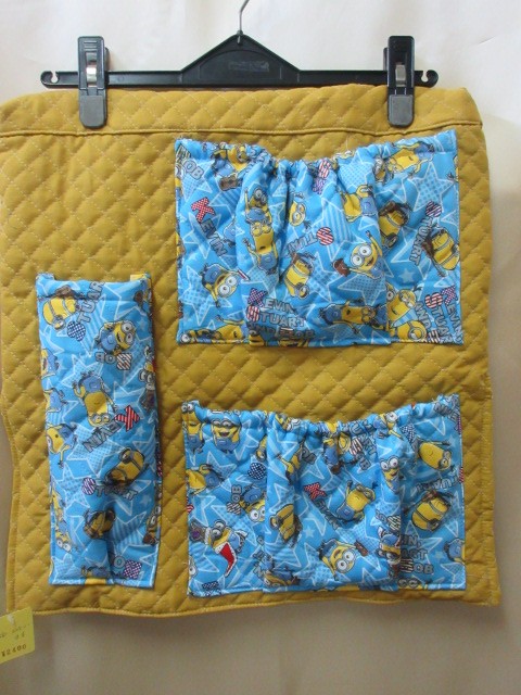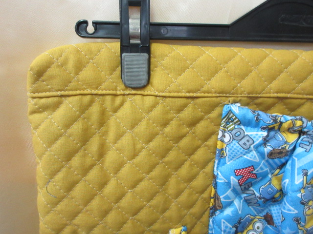 無地のキルティングにキャラクターキルトをポケットにした見本です