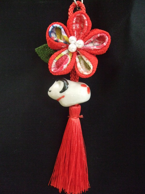 二重丸つまみストラップ(赤)|コットンショップたんぽぽ